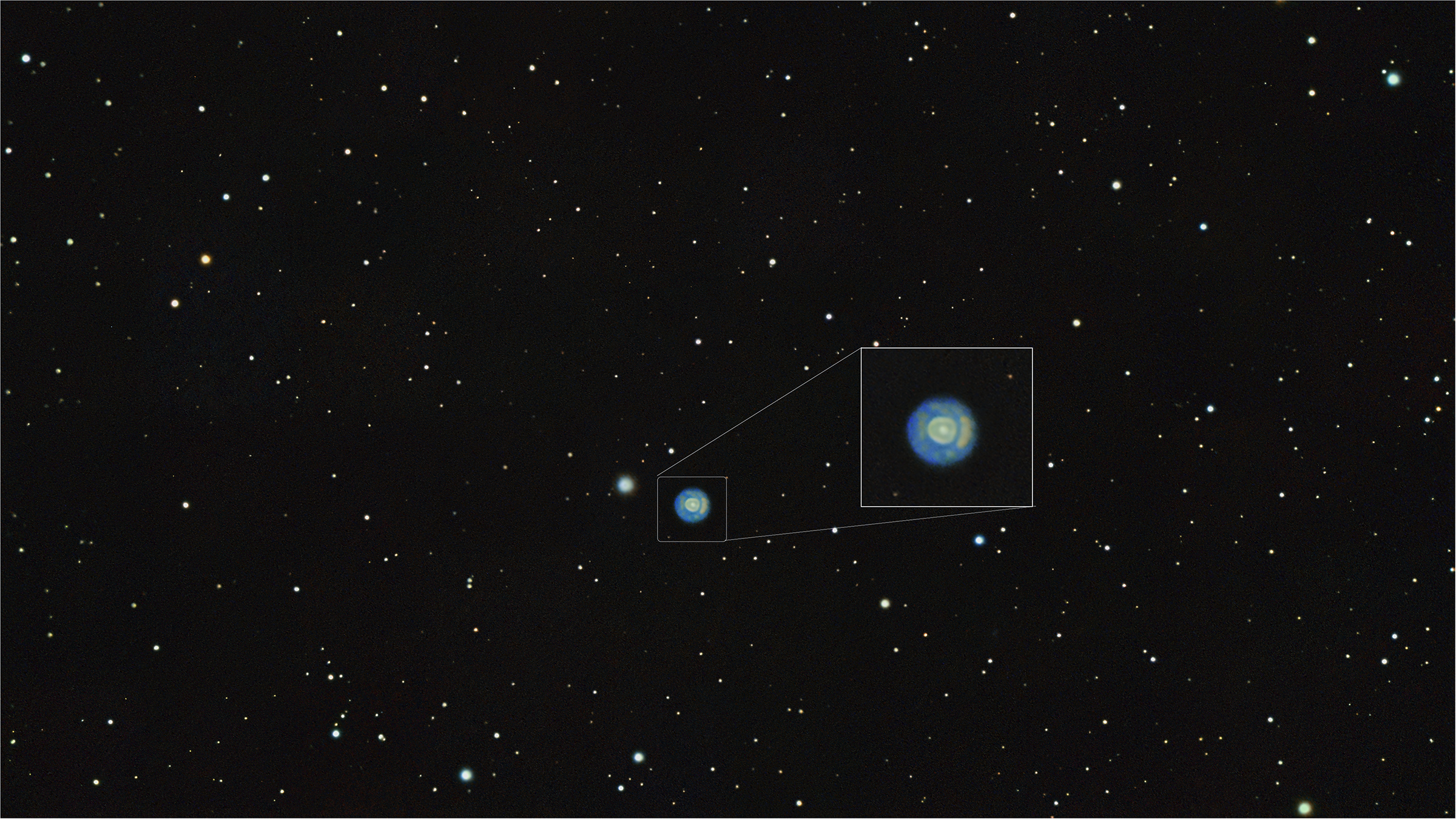 Teleskop: WO FLT110, Kamera: ZWO468mc, UV/IR-Cut Filter, 150 x 20 Sekunden Belichtung. Aufnahmesoftware: N.I.N.A., bearbeitet mit PixInsight: